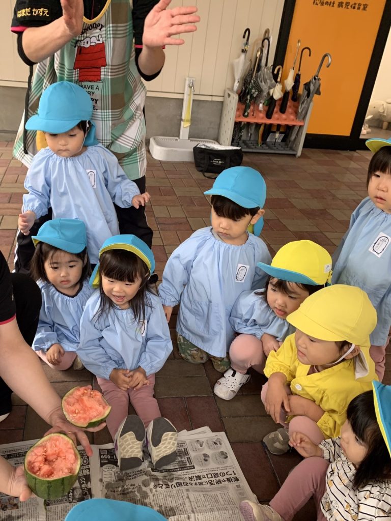 可愛いサイズのスイカ割りに、みんな楽しみました!