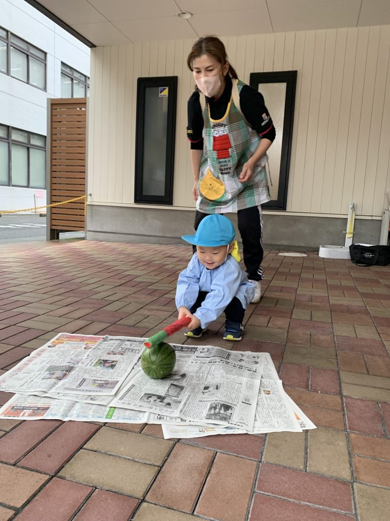 可愛いサイズのスイカ割りに、みんな楽しみました!