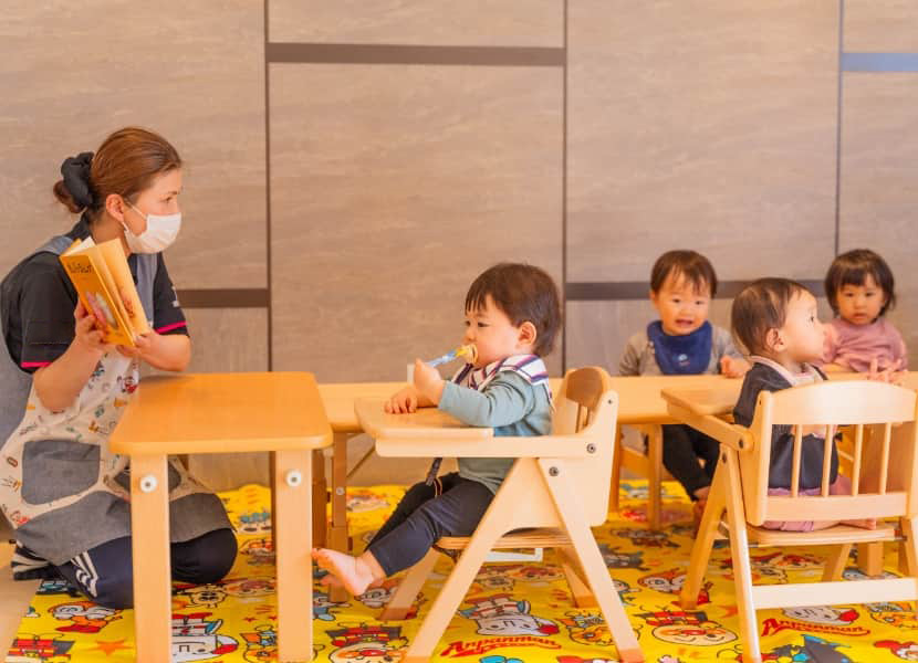 その他の時間絵本の読み聞かせや、お歌を歌います。 大きな窓から市電を眺めたり、お天気の良い日はかじやまちの杜公園へお散歩へ行くこともあります。
