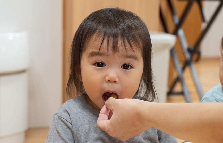日本の風習やイベントの際には、管理栄養士と子どもたちで食材を触ったり、匂いを嗅いでみたり、食に興味が持てるような体験型にすることで、食べることを楽しむ時間を作ります。