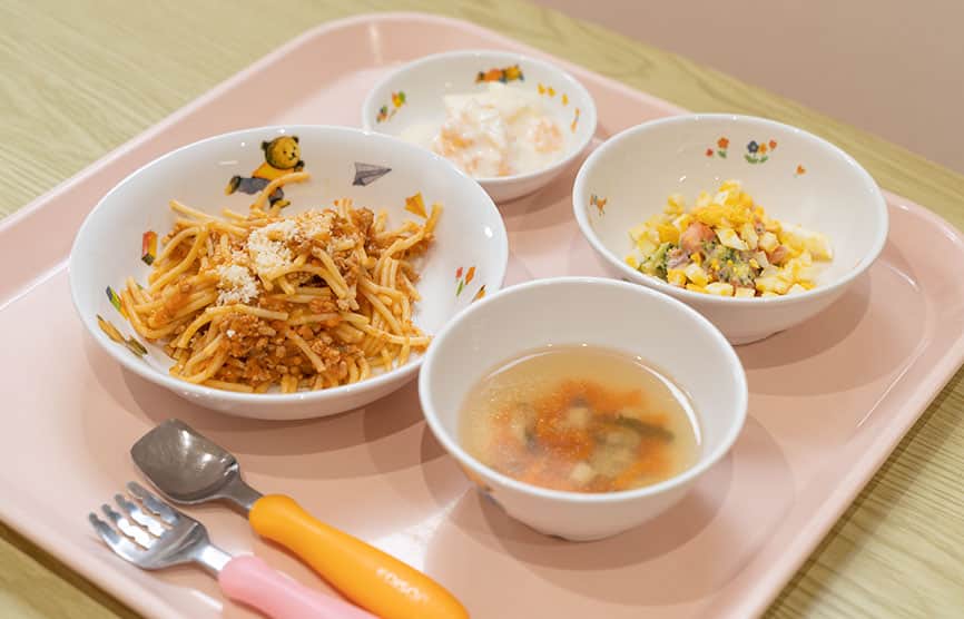 管理栄養士が毎日の献立を考え、季節ごとの食材を使用し、屋上庭園では子どもたちと一緒にお野菜を育てる食育にも力を注いでいます。