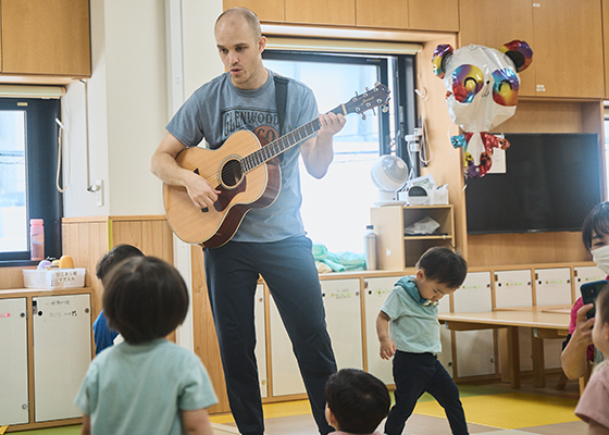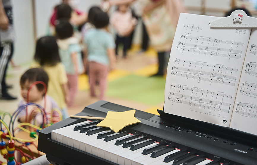 保育園では、定期的に英語教室と音楽教室を行なっています。