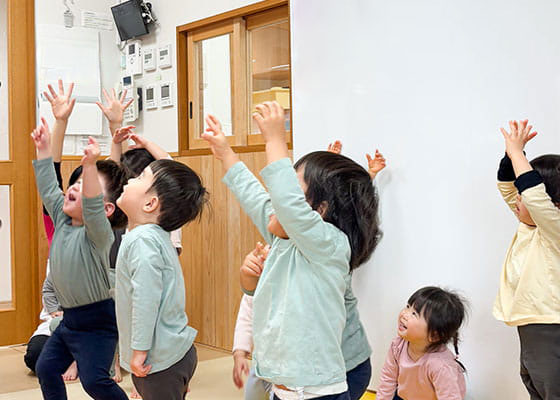 音楽教室では、曲に合わせて体を動かしたり、お歌を歌ったりします。