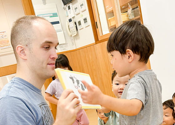 講師の先生と歌やゲームなどを通して英語に触れあいます。