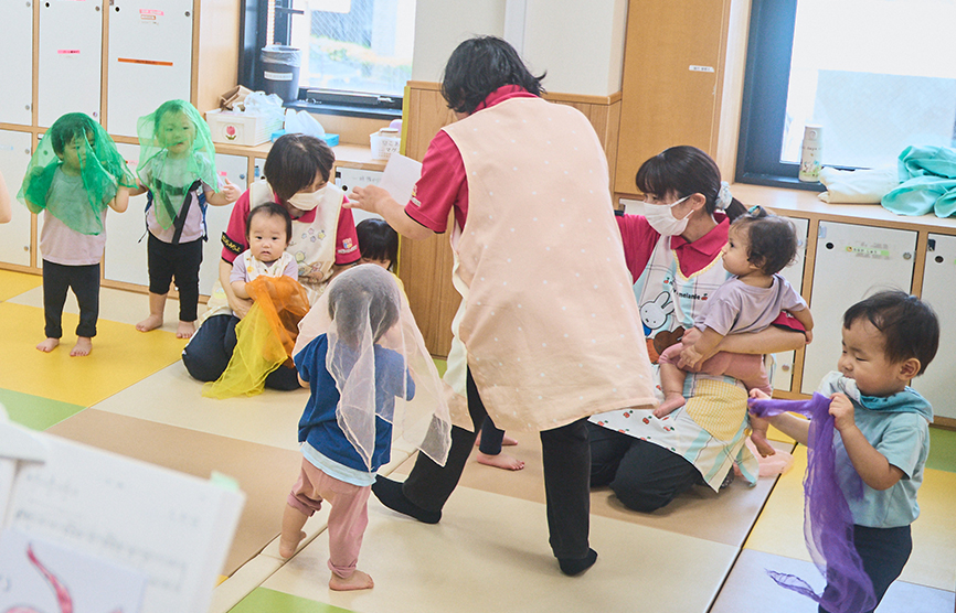きめ細かい保育子どもたちのさまざまな表情を見ながら、声をかけながら、子どもたちのいつもの時間がここにある、そしてお家のように安心して過ごせる毎日を大切にしています。